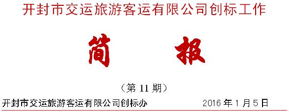 2015年12月29日上午9:00,在公司大会议室召开旅游标准化先进个人表彰大会。开封市交运旅游客运有限公司全体员工在公司标准化领导小组带领下,通过对标准化工作全面贯彻和落实,出现了一大批爱岗敬业的员工,其中邝建军、杜光跃、刘素玲等同志表现尤为突出,他们不仅在业务上刻苦钻研,更重要的是把服务标准化作为自己的行为准则,在创建旅游标准化工作中表现突出,邝建军、杜光跃、刘素玲等同志被评位2015年度“旅游标准化先进工作者”荣誉称号。