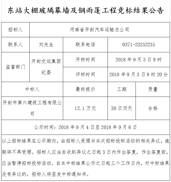 东站大棚玻璃幕墙及钢雨篷工程竞标结果公告
